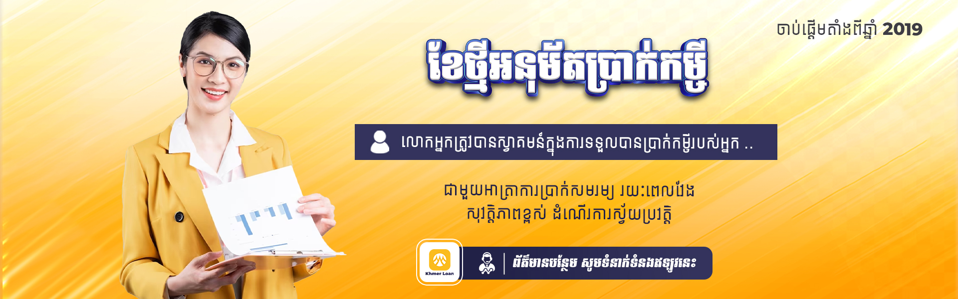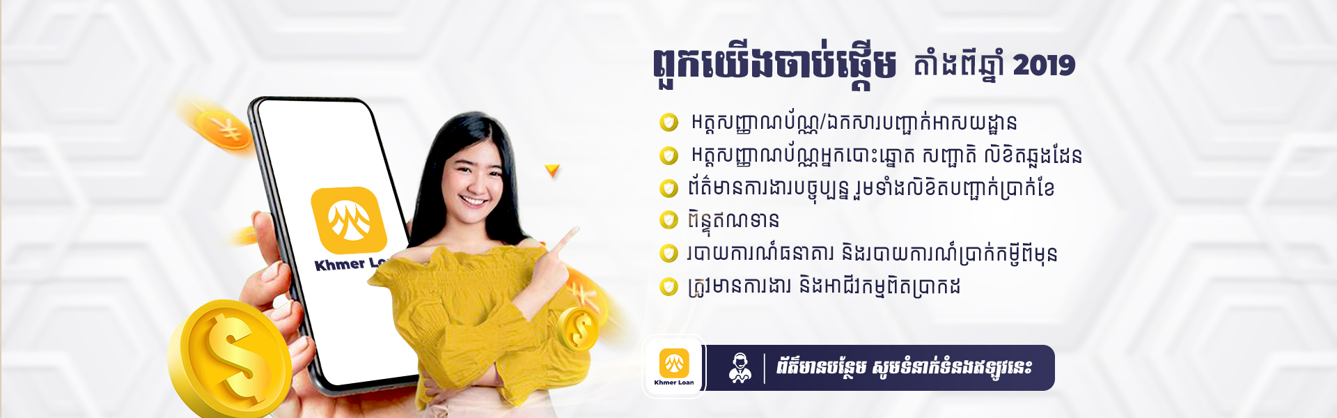 Khmer loan មានសេចក្តីរីករាយក្នុងការណែនាំអ្នកអំពីមុខងារថ្មីរបស់យើងនៅលើសេវាធនាគារចល័ត 2.5 ដែលឥឡូវនេះអ្នកអាចបើកគណនីធនាគារដំបូងបានគ្រប់ពេលនៅលើទូរស័ព្ទរបស់អ្នក។ អតិថិជនអាចបើកគណនីធនាគាររបស់អ្នកក្នុងរយៈពេលត្រឹម 2 ឬ 3នាទី នឹងអាចចូលទៅប្រើប្រាស់សេវាកម្មធនាគារជាច្រើនរបស់យើង ពួកយើងតែងតែទទួលយកនូវការផ្លាស់ប្តូរ ដែលជាភាពខ្លាំងក្នុងការប្រកួតប្រជែងរបស់ពួកយើង និងជាអ្នកត្រួសត្រាយខាងផ្នែកហិរញ្ញវត្ថុលក់រាយ ហើយពួកយើងមានគោលបំណងសម្រាប់ឧត្តមភាព តាមរយៈការបង្កើតថ្មី