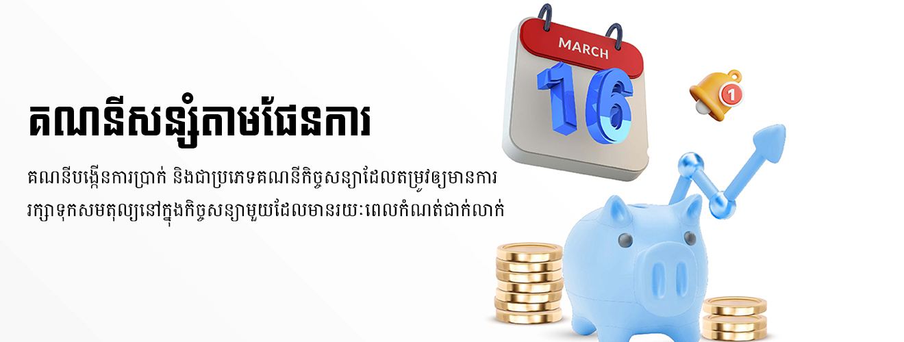 - ការ​ប្រាក់​ត្រូវ​បាន​គណនាជារៀង​រាល់​ថ្ងៃ និងត្រូវផ្តល់ជូនជា​រៀង​រាល់​ខែ រៀង​រាល់​ឆ្នាំ